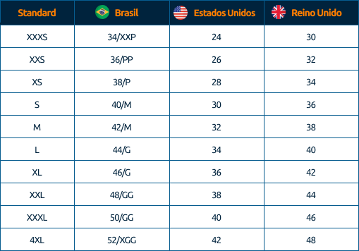 Para facilitar a busca pelo tamanho ideal de roupas e calçados, elaboramos tabelas comparativas que relacionam as medidas de tamanho do Brasil com seus equivalentes nos Estados Unidos e no Reino Unido.